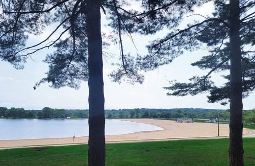 In addition to a magnificent view of our swimming lake and sandy beach, this site allows easy access to many of Camp Dearborn's diverse amenities, including shaded picnic areas, miniature golf course; paddle boats; easy access to hiking and biking trails and canoeing opportunities on the picturesque Huron River; and a magnificent 27-hole championship golf course.