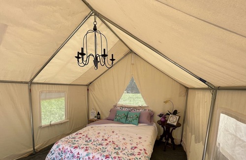 Pet Fee: $15 per stay, payable directly to the host at check-in. Bring your furry friend to enjoy this site! Just make sure to pick up after them. Maximum of 2 dogs/pets per unit. Dogs must always be on a leash when outside. Dogs are not to be left in the tents unattended. Please clean up after your pets to avoid a cleaning fee. Pet waste bags will be provided.
