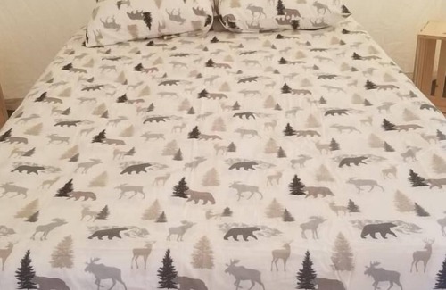 Your Tentrr campsite includes a 10'x12' (120 square feet) safari-style canvas tent on a raised wooden platform. Inside the tent you'll find one queen bed or a queen-size bunk bed (see photos for the exact setup). The tent is big enough for the bed plus one or two extra sleeping bags on the floor. Aside from the canvas tent, campers can also use the extra 5-person pop-up dome tent that’s provided. You'll also have a 6-ft picnic table, outdoor fire pit, and 2 Tentrr Adirondack chairs.