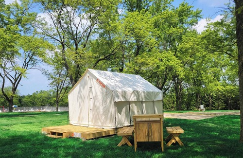 Plan ahead. Check in is at 3 p.m. Your site is equipped with electricity, and you will need to provide your own food, bedding, and any additional mattress(es). Check out is at 11 a.m. Anything you brought with you to the site needs to be removed prior to check-out, including all trash, which must be properly disposed of in a receptacle. Your site was inspected for cleanliness and damage after the previous rental and will be again following your departure. Enjoy your stay at Camp Dearborn.