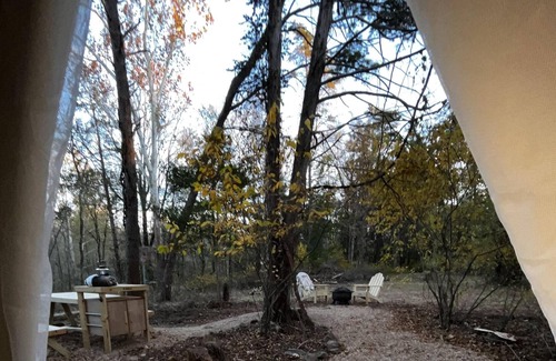 The campsite is tucked into a private forest with views of the Rappahannock River's beautiful floodplain. The river is about 300 feet from your tent site. It is also a Stargazers paradise! Trails everywhere! Need extra heat? Add the propane heater to your stay for 30 dollars. The property is home to herds of whitetail deer, wild turkeys, bull frogs, box turtles, visiting Canada Geese, Wood Ducks, Great Blue Herons and Red-tailed Hawks, eagles, chickens, cranes, and 3 rescue dogs.