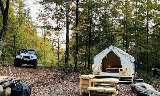 Parking: with 4WD you can park right next to the tent site. Parking for trailers and 2WD vehicles is is located at the entrance of the access road. Turn onto the private dirt road marked 112 Veterans Park Road. Continue until you see the parking area marked "Tentrr Parking". That is the designated spot for those that have trailers or 2WD vehicles. If you have 4WD and would like to drive to the tent site, stay right and follow the Tentrr signs up the dirt road.