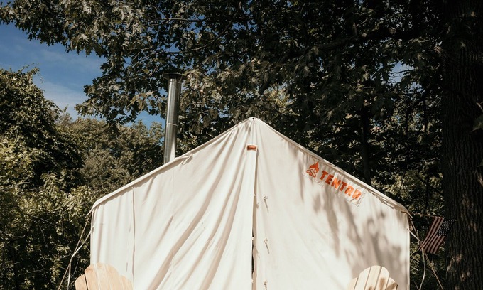 Each campsite includes a 10'x12' safari-style canvas tent on a raised platform, and you'll find one queen bed or a queen-size bunk bed inside (each site is different, see photos for the exact setup). Larger groups can also use the extra 5-person pop-up dome tent that’s provided (you’re welcome to bring your own camping gear too). You'll also have a 6-ft picnic table, outdoor fire pit, 2 Tentrr Adirondack chairs, and a heating source to keep you warm and toasty at night.