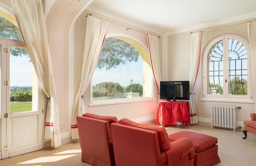 Please notice that photos are taken in spring, therefore flower blossoming, and the colours of the gardens' grass could be different at the moment of your arrival at the villa.