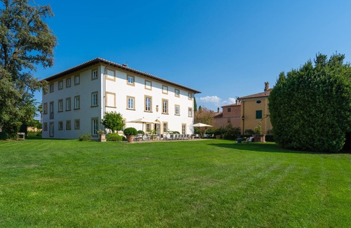Located in the centre of the Val d’Era, not far from many of the most beautiful gems of this corner of Tuscany, like Peccioli, Volterra and San Gimignano, Tenuta di Pratello is surrounded by the elegant colours of the countryside and surrounding hills. The villa is located within an old hunting estate dating back to the 17th century, with its own little church and framed by the whole complex of buildings that have kept their original features. The estate extends for about 320 hectares, characterised by faunistic scenarios of original beauty such as woods and olive trees. Surrounding the villa is a Renaissance garden that has undergone meticulous renovations aimed at enhancing and embellishing the original architectural lines. The villa has three floors covering an area of about 500 sq m which, with its white façade, stands out majestically on the green lawns of the park. You can still breathe the air of times past, you can imagine the ladies going from one hall to another with their hair up and wearing the long, simple dresses of the time. On the ground floor is a professionally-equipped kitchen, able to satisfy all the guests' demands and all modern needs, and a second kitchen which, instead, has maintained its original characteristics, with terracotta floor and a focarile (fireplace) which, just by looking at it, seems to have stopped time. Following on is the dining room, sitting room, two bedrooms and two bathrooms. On the first floor is a large relaxation area consisting of a sitting room and a large, brightly-lit room with a frescoed, vaulted ceiling containing a billiard table, three bedrooms with bathroom and a suite with hydromassage tub. On the second floor are six, recently renovated bedrooms with private bathrooms, all well-lit with clean modern lines. The interior of the villa, although renovated, has maintained the integrity of the original 17th century features with the floors ranging from terracotta, to wood, to Florentine ceramics that are increasingly rare to find; very brightly-lit where each window has its own unique view. The exterior has been organised to allow guests to dine outdoors or just relax on the lawn, to stroll in the Italian garden that emanates scents of roses and lavender. The property offers the most demanding client all the amenities he needs, with the swimming pool of simple design, surrounded by a beautiful green lawn maintained with attention to every aspect, and the regular-sized tennis court, both located about 350 m from the villa; there is also the possibility of arriving at the property by private plane as about 1.5 km from the property, an airfield of about 1000 m, 30 m wide with a hangar has been built. Here privacy and confidentiality are guaranteed absolutely.