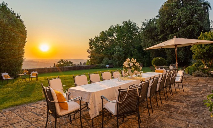 Best-rates for the Peccioli villa starts from $2,601 per night with includes Pet Friendly, Sports/Activities, Guest Services, Kitchen, Laundry, Security/Safety, Bedding/Linens, Air Conditioner, Balcony/Terrace, Wellness Facilities, Fireplace/Heating, Child Friendly, Internet, Parking, Pool, TV, Private Pool with all other amenities. Perfect for Weddings is committed to ensuring every guest experiences a comfortable and extraordinary stay, whether planning a romantic getaway, a honeymoon, a pet-friendly stay, or celebrating with the entire wedding party.