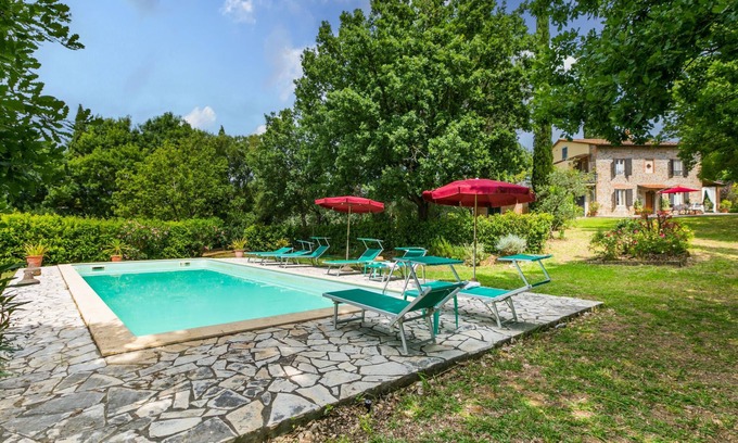 Tenuta La Colonna proposed by us as an independent house is divided into three apartments, communicating with each other from the outside. Each of them equipped with a kitchenette. House "Tenuta La Colonna", detached. 6 km from the centre of Vinci, 25 km from the centre of Lucca, 50 km from the centre of Firenze, in a secluded, quiet, sunny position. Private: park 15'000 m2, swimming pool (12 x 6 m, depth 140 cm, seasonal availability: 25.May. - 05.Oct.). Outdoor shower, garden furniture, barbecue. In the house: central heating system, heating to be paid on the spot, heating available only from 01.Nov. - 07.Apr.. Parking on the premises. Shop 1 km, supermarket 1 km, bus stop 400 m, railway station "Empoli" 20 km, sandy beach "Versilia" 58 km, thermal baths "Montecatini Terme" 15 km. Golf course (18 hole) 10 km, riding stable 8 km. Nearby attractions: Cerreto Guidi 10 km, Montecatini Terme 15 km, Pistoia 18 km, San Miniato, Montecarlo 20 km, Carmignano, Collodi 23 km.