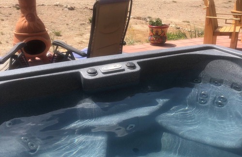 Enjoy a 2 bedroom, 2 bath upstairs barndominium apartment on 107 acres of pristine Desert wilderness, nestled in a valley between awe-inspiring mountains. Witness the most amazing sunrises, sunsets and star shows anywhere! See the Milky Way in all it's glory in our "dark skies" territory and from the brand new 6-person hot tub ("hot" in the winter - a "cooling pool" in the summer - you adjust the temperature to meet your preferences).