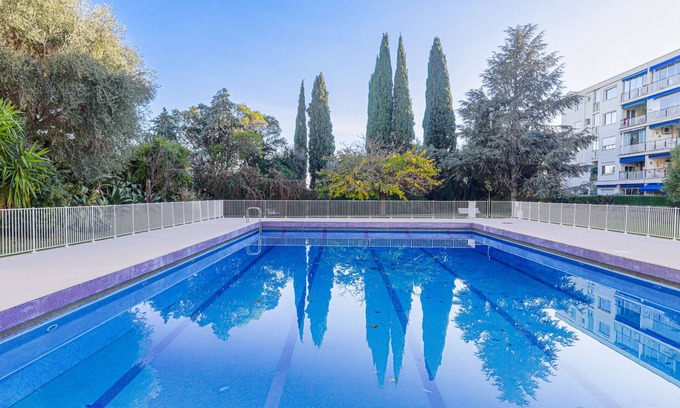 Nice: Comfortable residence "Terrasses de la Baie des Anges". In the district of, 1.5 km from the centre, 800 m from the sea. For shared use: swimming pool (25 x 14 m, depth 120 - 250 cm, seasonal availability: 01.Jun. - 30.Sep.) with internal staircase. Children's pool. Private: park 3'000 m2 (fenced). In the house: lift. Parking (limited number of spaces), public parking on the road. Shop 20 m, grocery, restaurant, café 20 m, tram "Arrêt Hôpital Lenval - ligne 2" 100 m, bus stop 20 m, shingle beach 150 m. Golf course (18 hole) 25 km. Nearby attractions: Place Masséna/Coulée Verte 4 km, Vieux Nice 5 km, Villa Kerylos Villefranche sur Mer 13 km, Marineland 16 km, St Paul de Vence 17 km, Monaco 24 km.