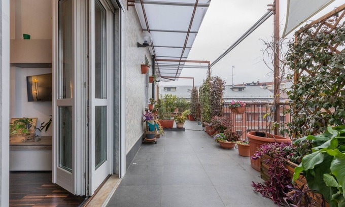 Immerse yourself in the welcoming and vibrant atmosphere of Santa Rita, one of Turin's most renowned districts. The area is distinguished by a wide array of services, including charming boutiques, gourmet delicatessens, cozy cafés, and a local market, perfect for exploring regional flavors.This spacious and luminous apartment has been designed to ensure a comfortable and relaxing stay. The fully equipped open-plan kitchen features a refrigerator, microwave, traditional oven, coffee machine, toaster, and TV, along with a stylish dining table. The living area includes a comfortable double sofa bed and an additional TV, creating an ideal space for unwinding. A large terrace, which wraps around the entire apartment, offers an exclusive outdoor retreat, perfect for enjoying serene moments and a panoramic view of the city. A practical enclosed balcony, equipped as a laundry area with a washing machine, complements the outdoor spaces. The sleeping area comprises a generously sized double bedroom and a second bedroom with a single bed, a pull-out bed, and a desk, making it ideal for those requiring a workspace. The apartment also includes a main bathroom with a shower and an additional half-bath, both elegantly finished.To enhance your stay, the property provides free Wi-Fi and air conditioning. *Air conditioning is present only in the living room.*Upon arrival or a few days before arrival it may be required to pay a tourist tax, which varies according to local regulations. You will find your reservation details within the Guest Area of Wonderful Italy.The wonderful city of Turin, the capital of Piedmont and known for chocolate, offers countless opportunities and experiences. The city is known for the sophistication of its architecture. One can admire sumptuous Baroque buildings that line Turin's great squares, such as Piazza Castello and Piazza San Carlo. In the historic center stands the Mole Antonelliana, one of the symbols of Italy, along with the Royal Palace of Turin and Palazzo Madama. Turin offers attractions for every taste, from outdoor activities to gastronomy. For a stroll among the greenery and the scent of flowers, you can visit the Botanical Garden of Turin built on the left side of the Po River, and the famous Valentino Park close to the historic center. Today the province stands as Italy's best center for chocolate processing, and every year the "Cioccolatò" event is inaugurated with parties, events, and tastings.Its strategic location allows for easy access to Turin Airport, situated approximately 16 km away, making it an excellent choice for tourists and travelers. This residence is the perfect solution for discovering Turin in style. It combines practicality, elegance, and a privileged location.