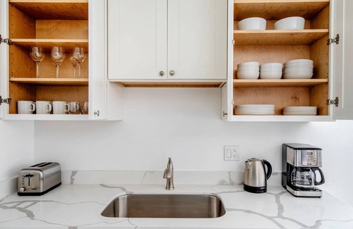 Thoughtfully designed with bespoke finishes, modern furnishings, and a fully equipped kitchen, you’ll enjoy that “I’m home” feeling with this Blueground apartment. Whether you’re lounging in your sophisticated living room streaming the latest and greatest entertainment on the smart TV or premium wireless speaker, or getting some well-earned rest on the superior quality mattress with luxury linens, you’ll fall in love with everything this Old Mountain View apartment has to offer.