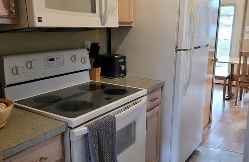 The Teton Cabin sits on the bank of the Clark Fork River at The Riverfront Motel & Cabins. Fully furnished two bedroom one bathroom Cabin with full kitchen, dining room, livingroom with a Queen pull out sofa, and fireplace. A beautiful deck with table and chairs included with a view thru the trees looking at the Clark Fork. A trail with furniture is located down at the beach. Each bedroom has a queen bed, and a jack and Jill bathroom. Kitchen is fully stocked with all necessities. If anything is needed, please ask and we can accommodate. On site is an ice machine, and gas bbq grill, free to use, and coin operated washer and dryer. Located at this Cabin is your very own firepit.