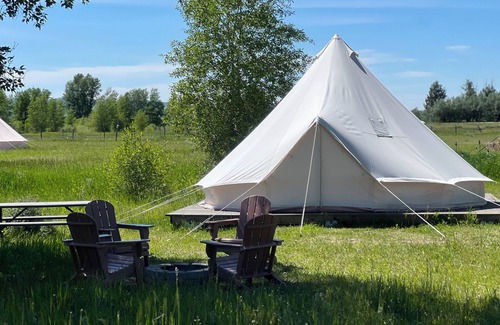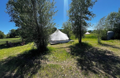 The Teton View Tent is located in Tetonia, Idaho and has breath taking view of the Tetons.