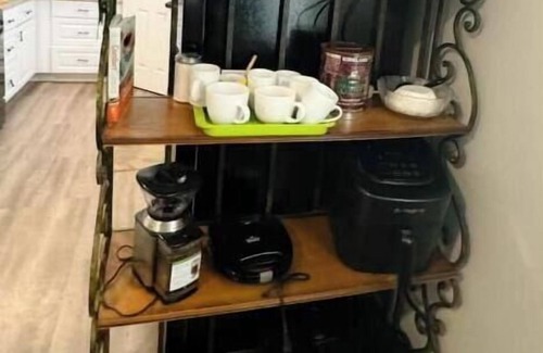 Welcome to the manly cowboy retreat, decorated with texas memorialbilia and catering to all the men out there with a free weights set out back, dart board, poker, bbq, and large screen tv inside a huge entertaining living area. Saddle up there to watch your favorite game on our smart tv. This recently renovated property which is accessible to local hot spots, and sleeps up to 10. Comfy Beds: 2 queen, 1 queen sofabed, 1 full, 1 twin, 1 king. Either memory foam or cushioned spring mattresses. Kitchen boasts everything needed to whip up large meals for your crew on our 5 burner gas stove. Charcoal grill located just by front door, adjacent to kitchen. Please bring your own charcoal/lighter. Also take advantage of coffee pot/french press/ or keurig for a quick get-up-and-go-joe. Women/children will love the upscale decor and toys and kids-ware in kitchen.