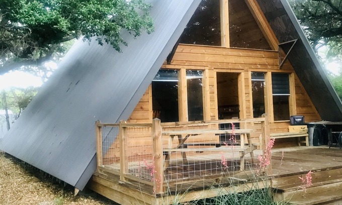 2020 build set on 20 acres! Enjoy watching free roaming white tail and Axis deer in the Hill Country. This wonderful wooded area enables your friends and family to enjoy the outdoors in the shade. The A-Frame is located in the best place for cruising around the Scenic highways of the Legendary Twisted Sisters. These roads take you to your favorite State Parks, vineyards, local hiking or Frio River spot.