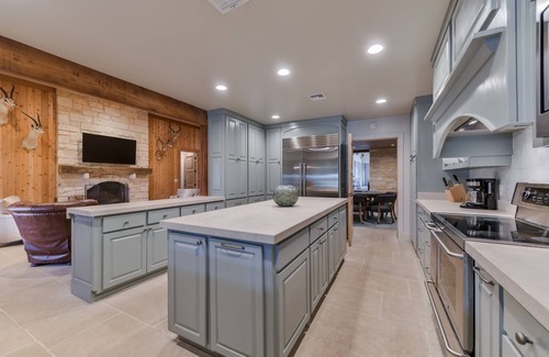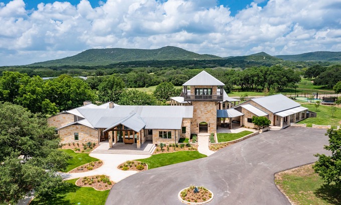 A beautiful home with 10 bedrooms, 9 bath on 2,200 acre ranch perfect for groups or families. Pool, Lakes, safari rides, sports court all included. Perfect for family gatherings and spending summer in a 5 star resort.