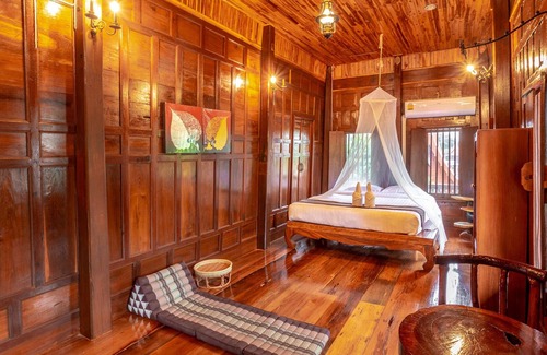 - Real Thai Teak House on the River with king bed and nice garden