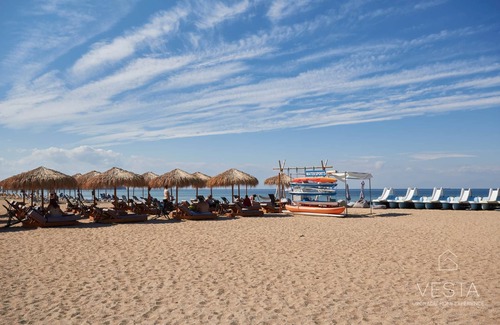 Α 65sqm seafront apartment for 4 guests located in Neoi Epivates, offering beautiful sea views over the famous Neoi Epivates beach. The 3rd floor vintage apartment is just a few steps from the sea and all amenities. There are 2 bedrooms, one with queen size bed and the other with 1 single bed which converts to a double bed. Featuring a fully equipped kitchen, air-conditioning throughout, free unlimited WIFI internet, private washing machine and private balcony, the apartment is ideal for a couple or family seeking comfortable accommodation close to both the city of Thessaloniki and the beaches of Chalkidiki.