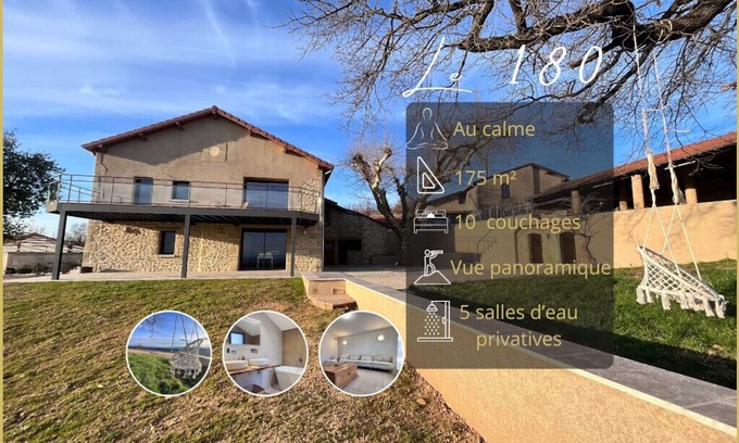 Perched on the hills with a breathtaking view over the picturesque landscapes of the Rhône Valley, our gîte invites you to enjoy a stay of rare elegance, combining modern comfort, authenticity and a breathtaking natural setting. A true haven of peace, this fully renovated former farmhouse of character allows you to escape to a calm and refined environment, while being within easy reach of local attractions and the region's great wines.