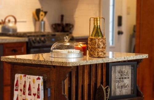 The 1801 House is a newly renovated historic home that has kept it's unique style and charm throughout while boasting a modern kitchen and appliances. Whether you feel like making a full meal, baking a cake or cookies, or just baking a pizza or taking advantage of the romantic meals cookbook (in the island), you should find everything you need in this kitchen. Enjoy relaxing in the jetted spa tub after a day exploring the National Park Historic District or the many local area wineries, breweries, distillery, shops and restaurants. Come have your morning coffee or evening drinks on the wonderfully inviting covered porch as you plan your day or evening activities.