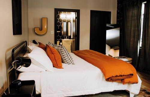 Welcome to The Jackson! This newly renovated spacious studio is one of our fan favorites. You will enjoy lots of natural light and room access to the outdoor courtyard. This open space has a living, kitchen, dining area, king bed, and sofa sleeper. With a fully equipped kitchenette, you can cook a quick meal or walk outside & enjoy the easy access to the city's shopping, dining, & entertainment venues. We think you will love the Jackson in the Historic Alexander Hotel. #leitchfield #kentucky