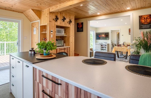 Like the three jewels of Buddhism, this chalet invites you to a stay of harmony and serenity: nature as spiritual master, comfort as refuge and the lake as source of renewal. Let yourself be enchanted by the tranquil setting and recharge your batteries on the shores of Lac Michaud, between Rimouski and Matane.