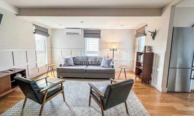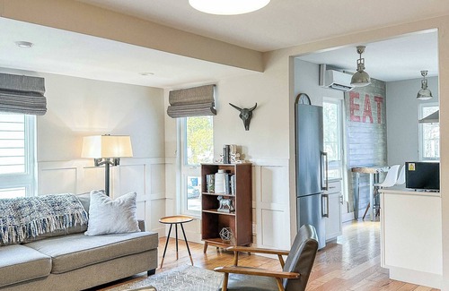 Guest favorite! Spotless and perfectly located 2-bedroom apartment. This deluxe experience offers every convenience - a new premium mattress, 50" flat screen TV, fully equipped kitchen with high-end appliances, sleek furnishings, and secure entry.