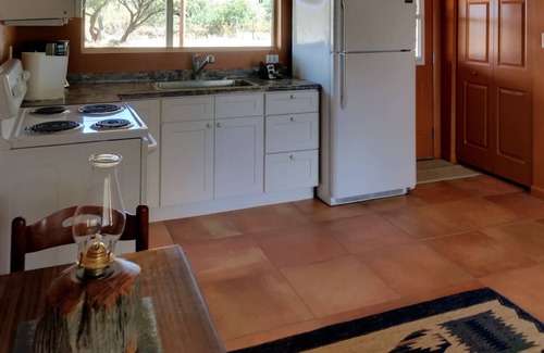 For your convenience, The 4V guest cabin is fully equipped with cookware, utensils, large refrigerator, electric oven/range, microwave, coffee maker, toaster and outdoor gas grill. There is also a clothes washer and dryer. The private fenced yard offers space for dogs to play, and for you to relax and watch the wildlife.