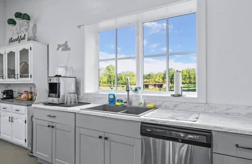 Fully furnished kitchen, coffee bar, and laundry room