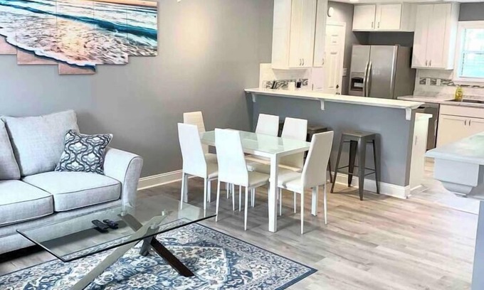 Step into a completely renovated, charming, and inviting home that is impeccably equipped for both short and long-term stays. Nestled in a safe neighborhood just a mile from the Camp Lejeune military base, our retreat is a perfect haven. A short drive to the stunning Emerald Isle and Topsail Beach, and conveniently close to shopping, dining, and grocery stores. Ample parking and pet-friendly welcome to your ideal getaway! This property stands out for its generous space combined with a warm, home-like ambiance. It is ideal for both short getaways and extended stays, accommodating guests for one night or an entire month with ease. Recently remodeled, the property is equipped with all the essentials to ensure a comfortable experience, including stylish furnishings, a fully stocked kitchen, and an ample supply of bedding, towels, and toiletries. The inviting yard and spacious parking options make it perfect for larger groups, ensuring that everyone feels at home during their stay. The entire place is yours During your stay, we prioritize your privacy and minimize disruptions. For any questions or concerns, please contact us via text or phone call. Messages on airbnb will likely not be seen as quickly. This neighborhood offers a warm and welcoming atmosphere, perfect for those seeking a sense of safety and community, especially amidst the active-duty military presence. Whether you're visiting loved ones in the service or planning a relaxing beach getaway, you'll find this area to be an ideal retreat. Conveniently tucked away from the hustle and bustle of major highways, it provides quick access to a wide variety of grocery stores and shopping options, making it easy to enjoy all the comforts of home during your stay. Uber/Lyft or taxis