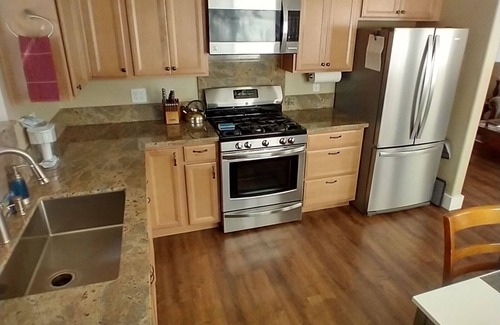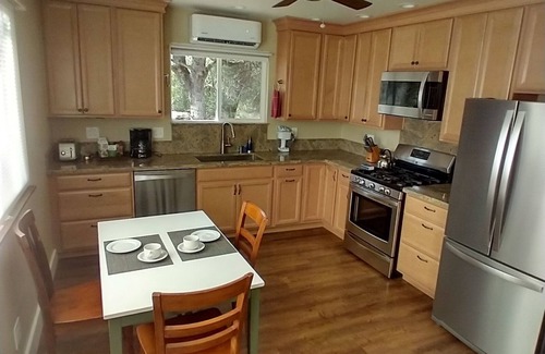 This spacious one bedroom, one bath, single floor cottage has a modern kitchen with granite counters, appliances and cabinets. Internet is non-shared, high-speed Xfinity/Comcast internet with 75 Mbps download/6 Mbps upload speed. Included are washer & dryer. It is available for a minimum stay of 31 days. No occupancy taxes!