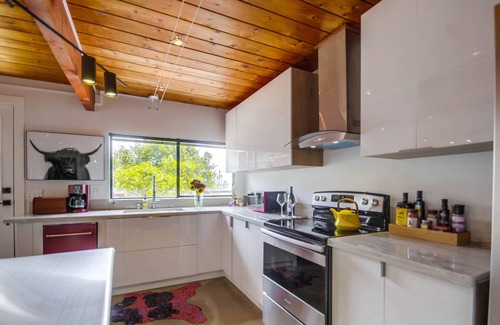 Lift your spirits and leave your cares behind at Agave! Only 15 minutes away from downtown San Diego, North Park, and OB, but feels like a world away in privacy, peacefulness, and tranquility. At Agave, kick off your shoes and feel the cool, polished concrete floors under your feet, stretch out on your double memory foam, queen size bed, relax in front of your 65 inch smart TV; enjoy home cooked meals in your new kitchen or order delivery and dine al fresco on your private deck with views overlooking Mount Helix!