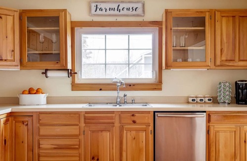 The Alexander House has a full kitchen equipped with a stove, microwave oven, and dishwasher. It is fully stocked! There is a washing machine and dryer, and detergent is provided for your convenience. BBQ grill with propane. Outdoor fire pit with wood provided.