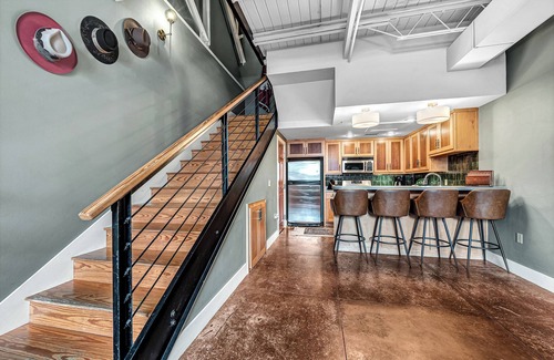 Enjoy our whole space with 2 levels of luxury! The condo provides a beautiful living space with a sleeper sofa, kitchen and powder bathroom on the main floor. Venture upstairs to find 2 queen bedrooms sharing a large full bathroom, laundry closet and small balcony overlooking Dickson Street. You can also use our reserved parking spots in the lot behind the building, leaving your cars behind and walking to everything Fayetteville has to offer.