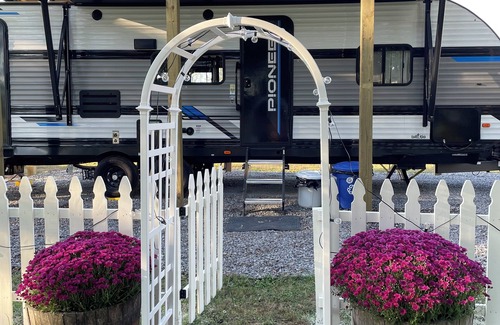 Your space is completely separated/fenced from all animals so that you only have to interact with them if you want to. The rental area includes the fully equipped RV, a small fenced yard with a picnic table and umbrella, firepit with Adirondack chairs, and a charcoal grill. We also have kayaks if you'd like to rent those by the day. If you'd like to make your arrival special with flowers, wine, or a charcuterie board, please let me know at least 72 hours prior to your stay to arrange that for you.