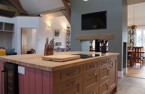 The living areas in the property consist of a kitchen/diner with electric double oven and induction hob, microwave, fridge, freezer, dishwasher, wine chiller, rack, breakfast table, Smart TV and a woodburning stove, a dining room with seating for 10, a utility with washing machine and tumble dryer, a sitting room with woodburning stove and a Smart TV, and a snug with Smart TV, PlayStation, table tennis, and a selection of books and games. The bedrooms consist of a ground-floor super-king-size with en-suite bathroom, two lower-ground-floor super-king-size with zip/link and en-suite shower room, a ground-floor super-king-size with zip/link, and a double with en-suite shower room, along with a ground-floor shower room. Outside, there is a front, enclosed, west facing terrace with outdoor furniture, wood-fired hot tub, panoramic far-reaching views across the farm to the distance with spectacular sun sets, as well as ample off-road parking. Within 1.7 miles, you will find a shop, and within 0.9 miles, a pub, and please note that this is a non-smoking property. WiFi, fuel, power, bed linen and towels are all included in the price. Pets are not permitted. For a luxury escape, choose The Anchorage @ Nables Farm.