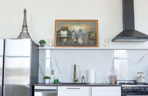 There are 6 stair steps leading to an elevator that takes you to the second floor to the outside entrance marked "No 9" , once you enter the foyer and select the door marked "B" you will enter the Anne-Claire loft through another flight of stairs. If you prefer stairs over the elevator there are stairs on the side of the building that will take you to the outside entry on the second floor as well.