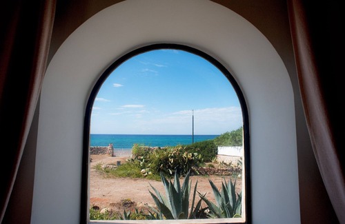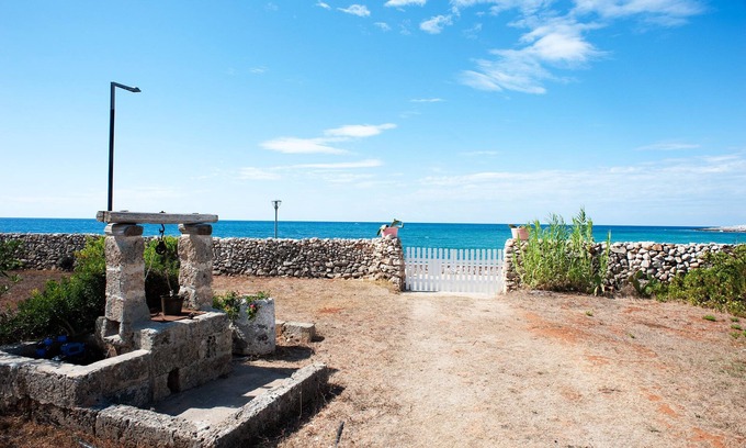 Close to the lovely seaside town of Santa Maria di Leuca on the southernmost tip of Salento, Le Antiche Pajare is a small restored farmhouse with thick stone walls, large grounds and stunning views of the sea, which is just a step or two from the garden gare.