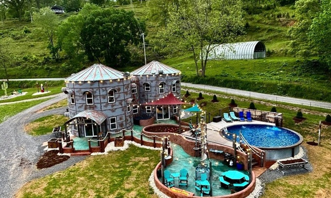 Escape to an oasis of extraordinary in this repurposed, one-of-a-kind grain bin in the heart of Appalachia! Perfect for families and small groups, this artistic getaway offers cozy spaces, mountain views, a pool, hot tub, and peaceful farm vibes. Submerge into an ocean of tranquility and make memories in a place as unique as your next trip.