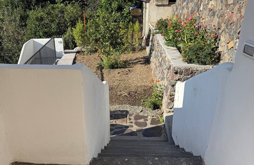 This Santa Marina Salina house is one of the oldest houses in the island. It just has been totally refurbished utilising old typical tiles. It is located near the Port and the historical center with shops, boutiques, cafes and restaurants. The house is very calm and is composed of one large bedroom (king size), one living room with 2 sofa bed (single) and kitchenette. There is a complete bathroom (with shower and bidet). The bedroom and the living room have direct access to a large terrace with beautiful view on the sea and other island equipped with table and chairs for your meals. There is also a nice garden with external shower. In the house you can find WiFi, AC and fans.