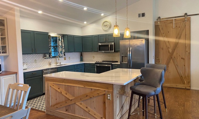 Welcome to our beautifully renovated single-level ranch house, designed in a charming modern farmhouse style. Perfect for families, friends, or a relaxing getaway, this home comfortably sleeps up to 7 guests and offers a blend of comfort and style.