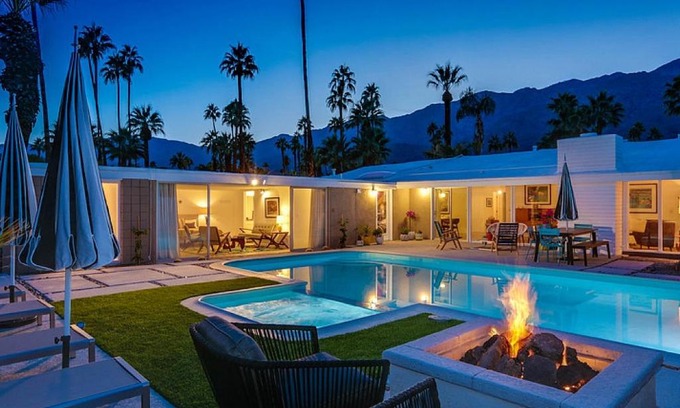 Best-rates for the Twin Palms house starts from $528 per night with includes Pool, Security/Safety, Sports/Activities, Guest Services, Barbecue/Outdoor Cooking, Child Friendly, Laundry, Air Conditioner, Balcony/Terrace, Fireplace/Heating with all other amenities. Perfect for Weddings is committed to ensuring every guest experiences a comfortable and extraordinary stay, whether planning a romantic getaway, a honeymoon, a pet-friendly stay, or celebrating with the entire wedding party.