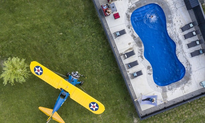 Prepare for landing at this stylish loft-style home-The Aviator’s Lounge. Enjoy deluxe amenities including a patio perfect for relaxing with a heated saltwater pool and 10-person hot tub. This spacious retreat is well-appointed with a full kitchen, large breakfast bar, inviting living area, and more! This beautiful home overlooks the historic Fayette Airpark and is above a hangar. Perfect for families or groups, aviation or history enthusiasts, and national park goers will enjoy this rental located above a hangar in Fayetteville. Conveniently located near Route 19 and all of the fun things to do in the New River Gorge.
