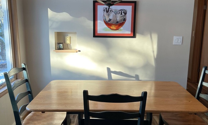 Welcome to the Badger House, your Rib Mtn basecamp. This family friendly home will nourish your soul while you explore Granite Peak and the Wausau area. Stocked with a fully equipped kitchen for making any meal imaginable, three cozy bedrooms with latex and hypoallergenic mattresses, a sleeper sofa, for extra family. The property has two living rooms if your party needs space, or the kids would like to enjoy a movie on their own. The drying room will handle all wet boots, and gear.