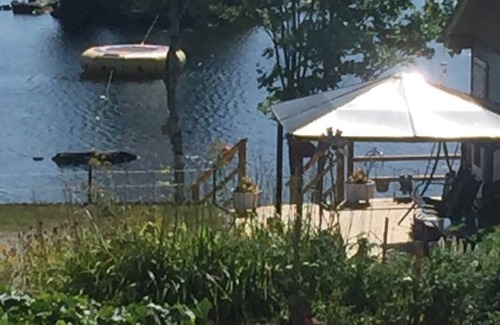 This cottage sleeps a total of 10 people comfortably. There is a fire-pit overlooking the beautiful lake. There is also a shared water trampoline for fun and relaxing on, a 5 person paddleboat and one youth sized kayak for guests to tour the lake on.
