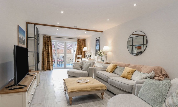 The open-plan living space includes a kitchen housing an electric oven and induction hob, microwave, fridge/freezer, dishwasher, a sitting area with smart TV and dining area, plus a utility with washing machine. The bedrooms consist of a king-size and a twin with en-suite shower, served by a cloakroom and a bathroom with freestanding bath and walk-in shower. Outside, there is an enclosed courtyard and designated parking for 2 cars. This property does not accept pets or smoking. WiFi, fuel, power, bed linen and towels are included in the price. Within 0.2 miles there is a shop and within 1.2 miles, a pub. Note: This property is located next to a busy road, so some road noise may be heard. Note: The TV requires guests to use their Netflix and Amazon Prime accounts for viewing. The Baker’s Oven is a contemporary holiday home for exploring the delights of Norfolk.
