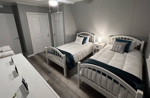 This newly renovated Modern Home caters you with 1728 sq ft. of an open concept floor plan, 3 large bedrooms and two full size bath rooms. This newly furnished modern Home provides you with 1 king size bed & futon, 1 full size bed, and 2 twin XL beds with 2 couches downstairs to accompany any extra guests. It comfortably sleeps 6-7 people. The two full size bathrooms are equipped with a large shower downstairs and a tub-shower combo upstairs. The open lawn provides a beautiful view of Lake Tuscaloosa with a gentle slope to the water accented with a breathetaking sunset for your enjoyment. Perfect for games, throwing the football around, sun bathing, and fishing. When the sun retires in the evening, the outdoor setup has multiple lit patios, a firepit, a grill (wood and charcoal provided) and plenty of seating for more R&R time. We are an easy 20 miles to The University Blvd with MINIMAL Game-Day traffic. No smoking on the premises.