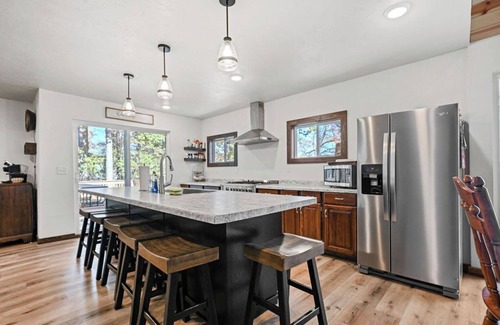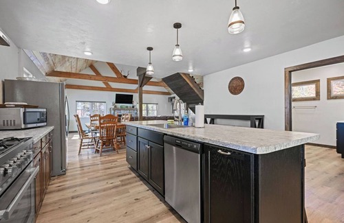 The Bar was recently renovated going from an outdated bar with attached living quarters to an updated retreat that the family will enjoy. The Bar offers 4 bedrooms, 3 full bathrooms, large kitchen with a 36" professional style range and 10 1/2ft kitchen island, fireplace and a loft with 4 more queen beds.