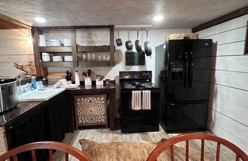 Step outside to your private porch area, perfect for morning coffee or evening cocktails as you take in the panoramic views of pecan trees and our two sweet and gentle horses. Fire up the BBQ grill for al fresco dining or gather around the fire pit for s'mores and storytelling under the moonlight.