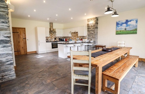 The Barn is a beautiful cottage located in Corwen, Denbighshire. Hosting five bedrooms; a king-size with en-suite bathroom, and three doubles and a twin, all with en-suite shower rooms. Inside, there is also a cloakroom, and an open-plan sitting, kitchen and dining area with breakfast bar. To the outside is ample off-road parking, and a patio with hot tub, barbecue, and furniture. Within 0.3 miles, you will find a shop and pub. Please note, this property is pet-free and non-smoking. WiFi, fuel, power, bed linen, and towels are all included in the rent. Highchair and travel cot available on request. The Barn is a magnificent cottage in an outstanding part of Wales. Note: Split-level landing. Note: Check-in from 5pm, check-out by 10am. Note: Low door frames in bedrooms. Note: Good WiFi for general browsing. Note: No music played after 10.30 pm. Note: Group bookings need to be over the age of 25. Note: Parasols are not provided or permitted. Note: Drones at the properties is not permitted. Note: No hen/stag/ similar group parties.
